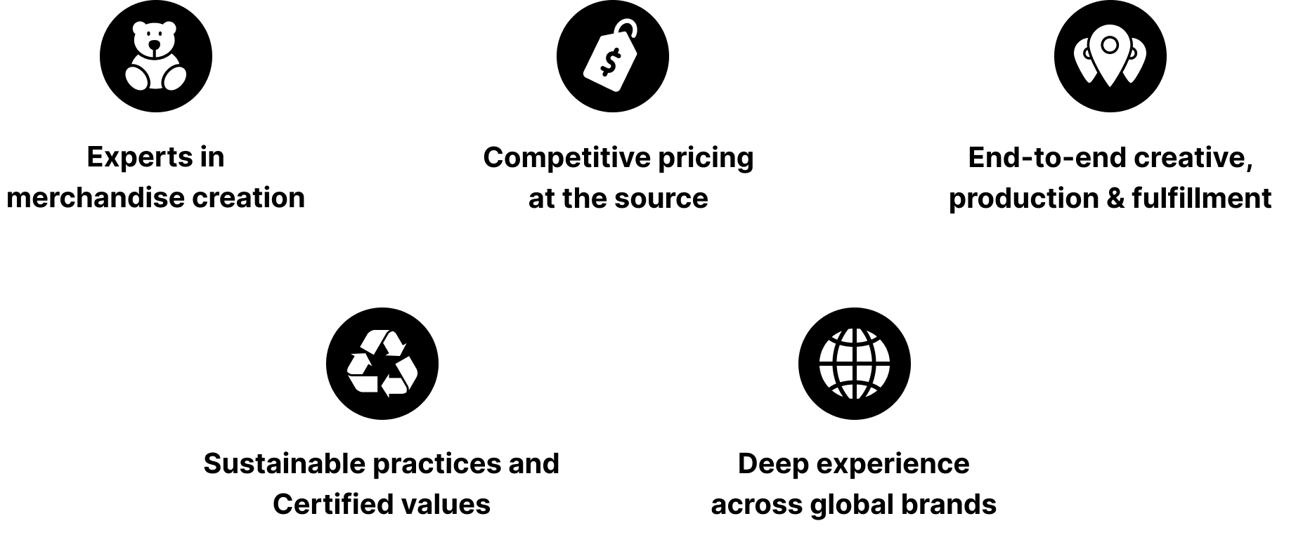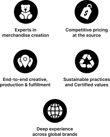 Our in-house specialists and network of 80+ manufacturers allow us to offer competitive pricing without compromising on quality or ethics. Sustainability is central to our process—we reduce plastic usage, shrink our carbon footprint and prioritize recycled materials wherever possible. Fun fact? Our medium plush can be made using approximately 6 recycled plastic bottles.